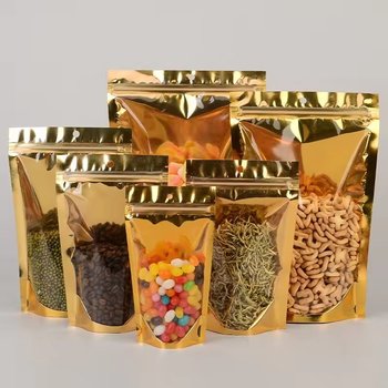 Bolsa dorada, bolsa transparente, bolsa de Mylar metálica de color superior abierta, bolsa de semillas para nueces, bolsa de patatas fritas, bolsa de fruta seca